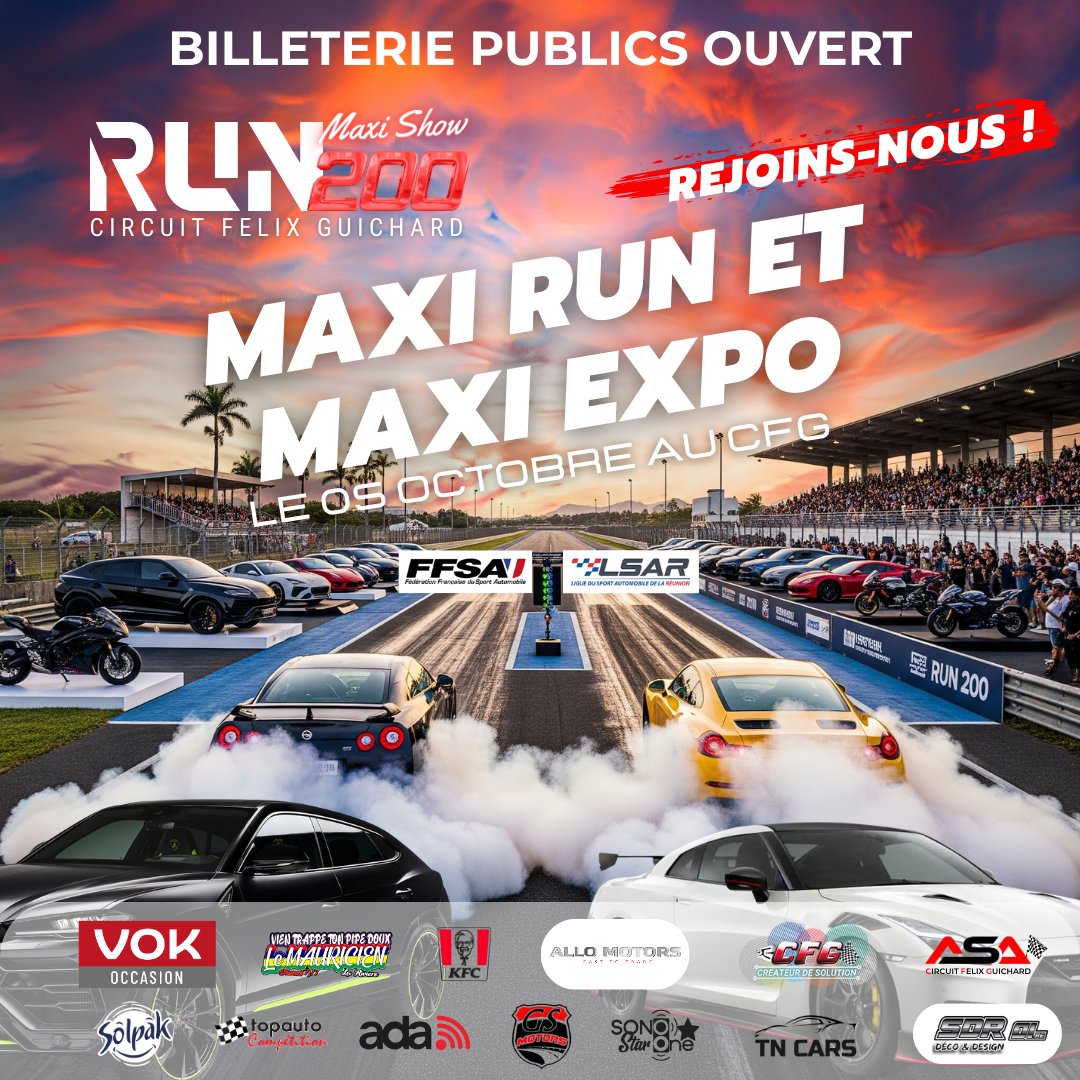 Maxi Show Run 200 – Rejoignez-nous le 05 octobre au Circuit Félix Guichard pour une journée inoubliable dédiée à la vitesse et à l’adrénaline ! Pour seulement 10€, vivez une expérience unique avec des épreuves d’accélération de 200 mètres, des courses de dragster et bien plus encore.